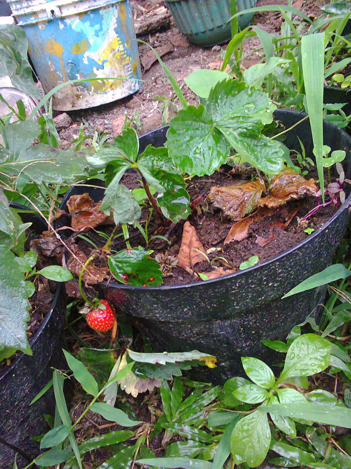 yang ini tanaman buah di rumah,, strawberry yg berbuah cuma 1 aja hehehe